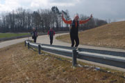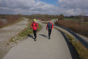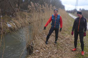 Wir überqueren wieder die Meringer Straße (km 13) und nehmen jetzt den Uferweg am Lech entlang. Bis zum Auensee passieren wir fünf Lechwehre, die Sohlschwellen wurden hier errichtet, um die jährlichen Hochwasser einzudämmen. Dem Mensch hat’s geholfen, der Natur leider nicht. Derzeit gibt es ein Bestreben mit dem Projekt „Licca liber - Der freie Lech“, den Fluss zwischen Staustufe 23 und der Mündung in die Donau zu stabilisieren und renaturieren. Das Wasserwirtschaftsamt Donauwörth plant die Schäden der Kanalisierung zu beheben. Zudem will man, wo es möglich ist, den Lech an seinen natürlichen Zustand annähern. Das wird spannend für uns, wo werden wir wohl in einigen Jahren hier entlang Laufen können?