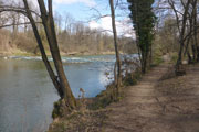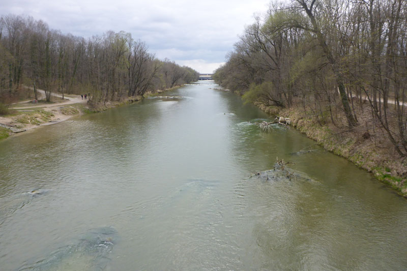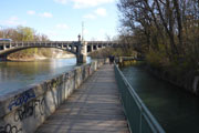 Wir erreichen Bogenhausen, ein gehobenes Viertel mit Juwelieren, Designerboutiquen, exklusiven Lebensmittelgeschäften und natürlich auch schönen und exklusiven Häusern. Um uns einige davon zu zeigen, wählt Andreas für 2,5 km die Pienzenauerstraße, die oberhalb der Isar durch das Wohngebiet verläuft und uns bis zur Wehranlage Oberföhring (km 4,5) führt. Hier beginnt der Mittlere-Isar-Kanal, der nach 64 Kilometern knapp oberhalb von Landshut wieder in die Isar mündet.