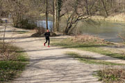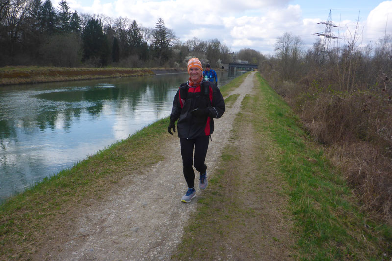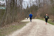 Charly ist es heute wieder mal zu langsam und setzt sich nach vorne ab, was ihm aber nicht allzu gut bekommt, prompt handelt er sich einen ersten zusätzlichen Kilometer ein. Beim Stadtdurchlauf Garching ist er plötzlich wieder in Sichtweite, aber er drückt weiter aufs Tempo und ist bald nicht mehr in Sicht.