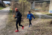 Wir wechseln jetzt wieder an die Isar und erreichen nach 15 km den Isar-Abschnitt der Ismaninger Winterlaufserie, an der wir früher regelmäßig teilgenommen haben. Nach genau 20 km sind wir am nördlichsten Punkt unseres Kurses, wir wechseln über auf die andere Isar-Seite und begeben uns auf den Rückweg.