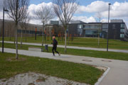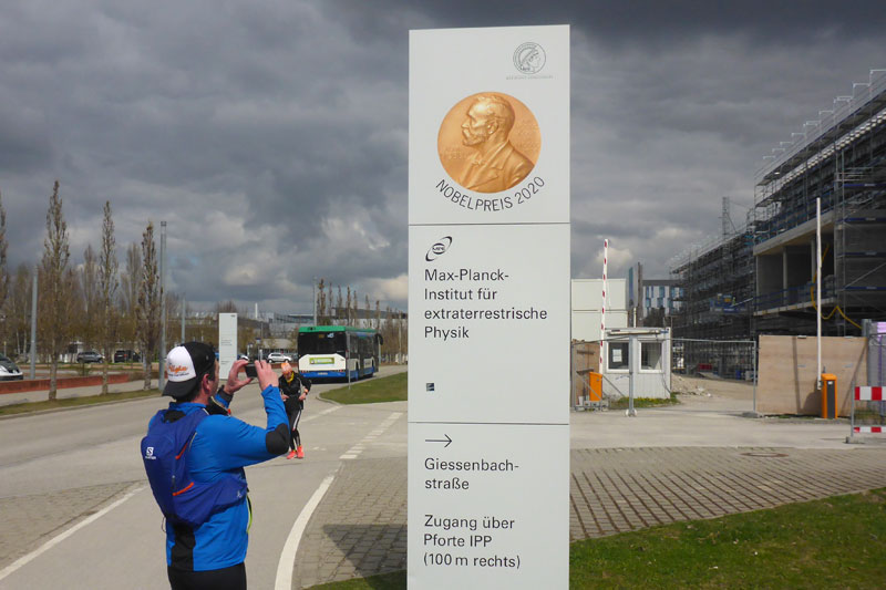 Der führt uns erstmal vom Fluss weg und durch das Forschungszentrum Garching und den Campus der heutigen TU München. Wir sind praktisch mutterseelenallein unterwegs in diesem riesigen Gelände, wo es zu normalen Zeiten wahrscheinlich nur so wuselt vor Leuten. Corona und Ostern haben hier aber alles leergefegt.