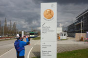 Am Atom-Ei legen wir erst mal einen Fotostopp ein. Im Jahre 1957 wurde es in Betrieb genommen und diente als Forschungsreaktor. Es war das erste Kernkraftwerk in Deutschland. Innerhalb kürzester Zeit entwickelte es sich zu einem Wahrzeichen der friedlichen Nutzung zur Erforschung der Kernenergie. Viele bahnbrechende Forschungen in den Bereichen der Physik, Chemie und Biologie nahmen hier ihren Anfang, wovon die Region stark profitierte. Im Juli 2000 wurde es außer Betrieb genommen, da es den heutigen wissenschaftlichen Ansprüchen nicht mehr gerecht werden konnte. Die 30 Meter hohe mit Aluminium verkleidete Kuppel gilt heute als Wahrzeichen von Garching und hat es sogar bis ins Stadtwappen geschafft.