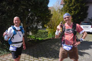 Das klingt doch schon mal alles echt super. Greppi, Charly und ich melden beim Marathon und wir wollen natürlich die Originalstrecke laufen. Wir wählen den 24. April als Termin. Leider muss uns Greppi absagen, er muss in Quarantäne, die Holde hat’s erwischt. So bleiben nur mehr Charly und ich. Unter strahlend blauem Himmel machen wir uns auf den Weg in den Südwesten. Start und Ziel liegen am Sportgelände von Lichtenwald, das im Landkreis Esslingen, etwa 30 km entfernt von Stuttgart in der Schurwaldregion liegt. Die Gemeinde Lichtenwald besteht aus den beiden Ortsteilen Hegenlohe und Thomashardt die sich 1971 zusammengeschlossen haben. Zwischendrin liegt die Sportanlage.