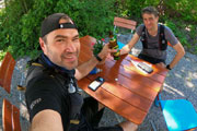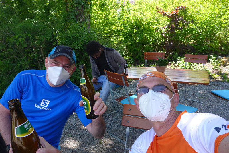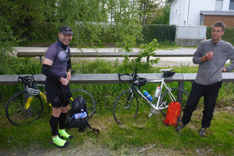 Der Kiosk in Dießen (km 29) bietet sich ideal an um Nachzutanken und das nützen auch alle aus …bis auf Andreas und Judith, sie lächeln mal kurz rüber und nützen so unseren Boxenstopp um unser Viererteam auf einen Streich zu überholen. Haben sie wohl von der Formel 1 gelernt. Nach einer ausgiebigen Brotzeitpause geht’s mit steifen Beinen weiter.