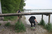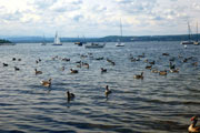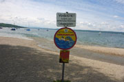 Meine Befürchtung, der viele Regen der letzten Tage, könnte die Trails unter Wasser gesetzt haben, bewahrheitet sich nicht. Bis auf ein paar Matschstellen präsentieren sich die Pfade in ausgezeichneten Zustand. Auf dem Seepromenadenweg erreichen wir nach 10 km die Herrschinger Bucht, sie ist ausgewiesen, mit 8 km Länge Deutschlands längste Seepromenade. Am Beginn der Bucht wird vom Baden ausdrücklich gewarnt, ein Schild weist auf Untiefe und gefährliche Strömungen hin. Den zahlreichen Enten und Schwänen scheint’s zu gefallen.