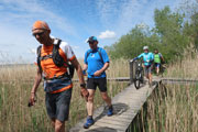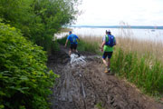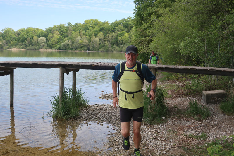 Die finalen zwei Kilometer bieten uns dann nochmals einen Trail durch das Naturschutzgebiet Oberes Moos. Ein letztes Schlammloch, bevor wir das Gebiet verlassen, bietet kaum Ausweichmöglichkeiten, so bekommen meine Schuhe noch einen schönen schlammigen Touch. Die mächtigen blauen Stahlbögen der Amperbrücke leiten 800 Meter weiter praktisch unserer Zielgerade ein, vom Scheitelpunkt ist die Einfahrt in den Parkplatz bereits einsehbar.
