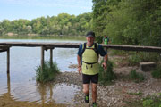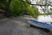 Wir cruisen dafür immer weiter am Seeufer entlang und tauchen immer tiefer ein in die Natur. Zwischendrin dürfen wir fast im Wasser stehend in die Knie gehen und den Kopf einziehen um unter Bootsstegen durchzutauchen. Campingplätze und Privathäuser zu den dazugehörigen Stegen, die oft viele Meter in das Wasser führen, sind allesamt noch verwaist, vielleicht ist es vielen noch zu kalt. Uns kommt das gerade recht, und die Temperatur passt optimal.