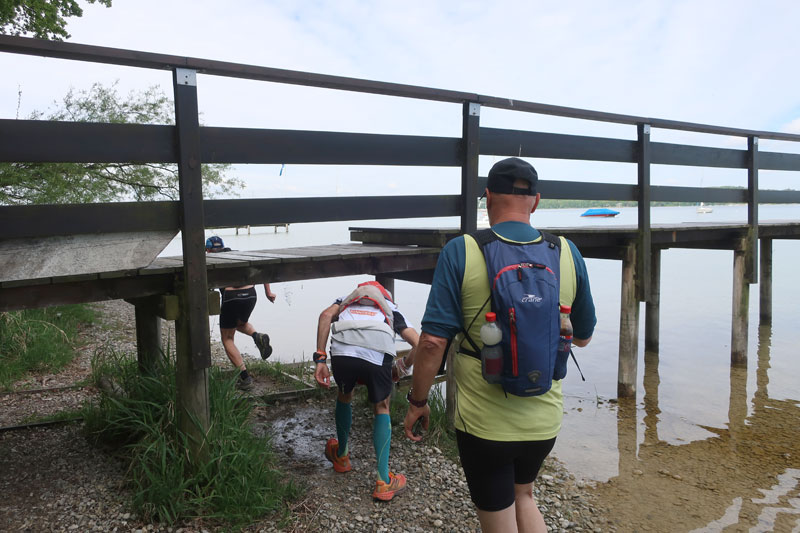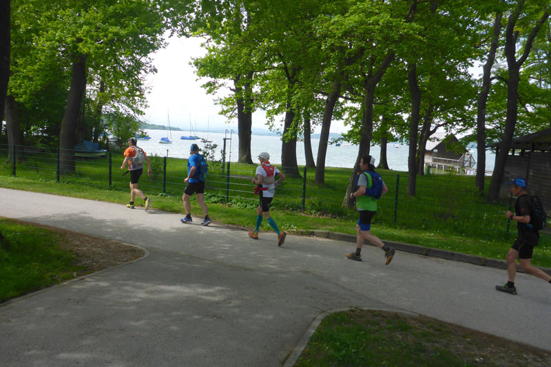 An der Ammerbrücke beginnt unser neuer Streckenabschnitt, mit dem wir die vom vielen Ausflugsverkehr stark frequentierte Dießener Straße umgehen. Charly und ich haben sie vor drei Wochen erkundet und für optimal empfunden. Die Umleitung gegenüber dem Vorjahr beinhaltet 2,8 Zusatzkilometer für uns, ist es aber in jedem Fall wert. Als Nebeneffekt kann unsere Strecke jetzt definitiv als Ultra gezählt werden, letztes Jahr lagen die GPX-Tracks allesamt mal knapp unter oder über 45 km.