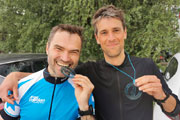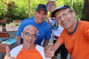 Bei den An- und Abmeldungen für unseren Mini-Event geht’s in der Woche vor dem Start rauf und runter, aber sie halten sich in etwa die Waage, so dass wir letztendlich unser Kontingent auf dem Parkplatz in Stegen voll haben. Unsere beiden „jüngeren“ Teilnehmer Dieter und Christoph kommen sogar von Augsburg mit dem Rennrad an den Ammersee. Einen Triathlon wollen sie aber dann doch nicht absolvieren, der Duathlon reicht.