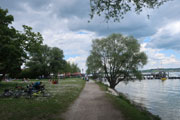 Im Zentrum der Herrschinger Seepromenade herrscht dann erstmals für heute so etwas wie Betrieb, das haben wir allerdings im Vorjahr auch ganz anders erlebt, heute kommen wir locker durch. Wir passieren die Dampferanlegestelle und diverse Biergärten und Lokale, die mit ihren Ständen am Ammerseeufer präsent sind.