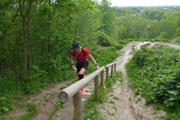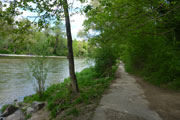 Zweihundert Meter nach dem Oberföhringer Stauwehr gibt es Alternativ die Möglichkeit, auf einen wunderschönen Trail direkt an die Isar zu wechseln. Den Tipp gab mir Andreas bereits beim Isar-Arena Marathon und auch heute nehme ich wieder die Möglichkeit wahr. Die vielen Regenstunden der letzten Tage waren aber für den ufernahen Trail nur suboptimal, immer wieder gilt es Wasserläufen und -pfützen auszuweichen oder zu überspringen. So werde ich nach 34 km vollkommen aus meinem Laufrhythmus gerissen. Frühzeitig wechsle ich wieder auf den ebenen Schotterweg, aber irgendwie kommen ich jetzt nicht mehr richtig in Schwung.