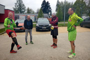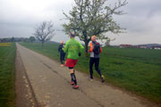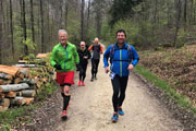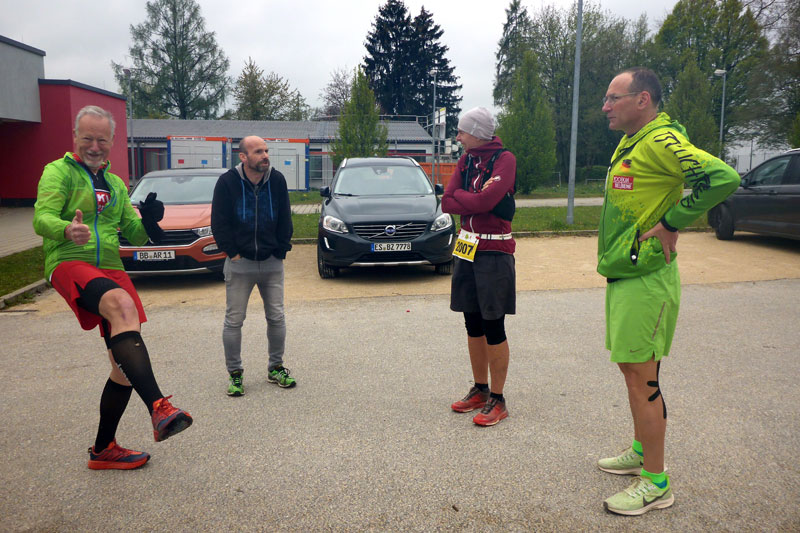 So mache ich mich also am frühen Samstagmorgen auf den Weg nach Lichtenwald. Rund zwei Stunden Fahrt liegen vor mir. Wahnsinn, so lange war ich für einen Marathon schon lange nicht mehr unterwegs. Wie sich doch die Zeiten ändern. Trotz meiner Zweifel bin ich voller Vorfreude. Nicht nur Andreas und Judith haben mir heute ihre Begleitung zugesichert. Auch Axel B. will mich unterstützen und das nicht nur laufend. Zudem werde ich Kalle zum ersten Mal seit längerer Zeit wieder sehen. Als ich vor dem Sportgelände des TSV Lichtenwald einparke, muss ich verwundert feststellen, dass hier ziemlich viel los ist. Damit hätte ich am vorletzten Tag gar nicht mehr gerechnet. Als erstes sehe ich Thomas, der aber keine Zeit für mich hat. Dem Tempo nach ist er auf den letzten Metern des 10-Kilometer-Laufes, da hat man keine Zeit, das ist klar. Die finden wir aber ein paar Minuten später. Auch wir haben uns schon lange nicht mehr gesehen. Andreas und Judith treffen ein, ebenso wie Axel B. Schließlich fährt auch Kalle vor und wir müssen uns einfach kurz drücken - Ich bin frisch getestet, da kann nichts passieren.