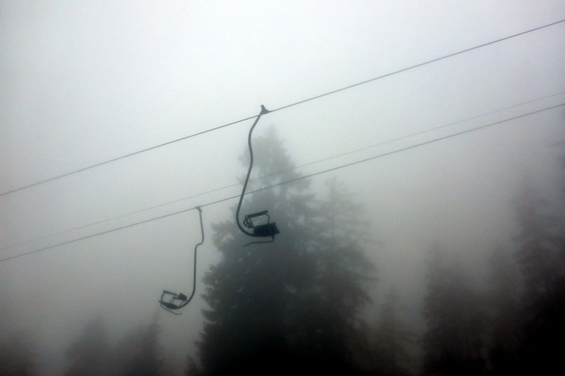 Gut drei Kilometer geht es nun nach oben und dabei gilt es auch 500 Höhenmeter zu überwinden. Wir befinden uns auf Höhe der Reit-im-Winkl-Schanzen. Vier Skisprungschanzen machen Sprungweiten von 20 bis 100 Meter möglich. Entdecken kann ich die Schanzen allerdings genauso wenig, wie die Verpflegungsstation zuvor. Entweder liegt es am trüben Wetter oder ich bringe die Augen einfach noch nicht weit genug auf. Ich vermute ersteres. Auf dem Anstieg zieht sich nun das Läuferfeld auch deutlich auseinander. Von den 128 gestarteten XL-Läufern dürften vielleicht noch zehn hinter mir sein. Das hatte ich so auch erwartet. Ich bin noch frisch und komme gut voran. Die Laufstöcke habe ich trotzdem schon ausgepackt.