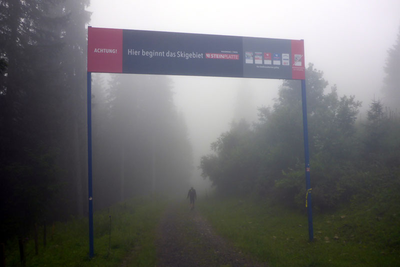 Kurz darauf erreichen wir den Parkplatz Seegatterl, der für viele Wanderungen aus Ausgangspunkt dient. Heute ist der Parkplatz nahezu verwaist. Bei diesem Wetter geht niemand freiwillig auf eine Wanderung. Am Ende des Parkplatzes wird unsere Startnummer kontrolliert. Wir haben den ersten Cut-Off der XL-Runde erreicht. Drei Stunden hätten wir bis hierher Zeit gehabt. Ein Blick auf die Uhr verrät, dass wir knapp eine Stunde Polster haben. Es läuft gut.