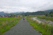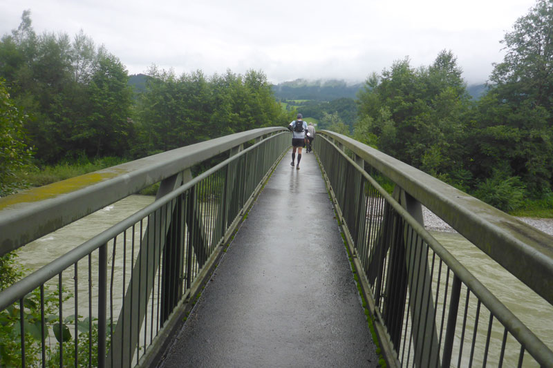 Besonders prickelnd ist es natürlich nicht, die ersten Meter mit Maske zu laufen, aber nach ein paar hundert Metern kommt auch schon das Schild, das Ding abzunehmen zu dürfen. Eine Brücke führt uns über die Iller und an ihr entlang zum Sonthofer See. Nach fast genau zwei Kilometern ist die flache Einrollphase beendet, am Ortsende Illersiedlung geht’s links weg und aufwärts. Anfangs auf einer Teerstraße aber noch gemäßigt, das ist noch problemlos im Laufschritt machbar.