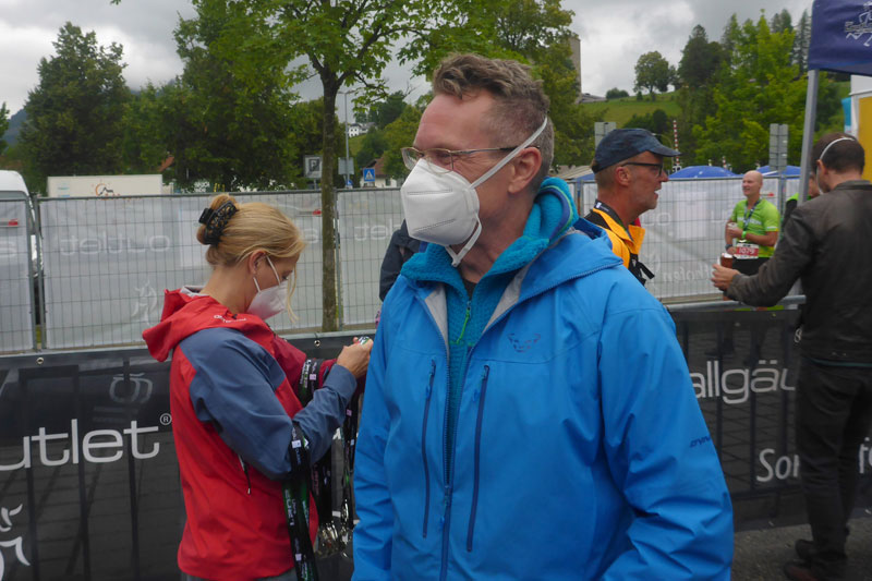Zum 7. Mal, entweder Ultra oder Marathon, bin ich heuer am Start, das Handy im Rucksack stört mich dabei nicht im Geringsten, hat man ja im Prinzip in den Bergen eh immer dabei. Hauptsache wieder einmal ein Start im Wettkampf-Modus. Nur ein einziges Mal war mir das in den vergangenen anderthalb Jahren vergönnt, zuletzt im Oktober 2020, umso mehr freue ich mich und bin hochmotiviert. Mit knapp eineinhalb Stunden Fahrtzeit wähle die morgendliche Anreise nach Sonthofen. Der erste Weg führt mich zur Tiefgarage des Allgäu Outlet Center, hier können am Morgen noch die Startunterlagen empfangen werden. Vorher muss ich aber noch mein Corona-Impfzertifikat und die Corona Warn App vorzeigen, um überhaupt die Startnummer zu bekommen. Dafür bekomme ich dann ein grünes Bändchen ums Handgelenk gebunden, sozusagen als Bestätigung. Das Ganze geht ruckzuck vonstatten, es ist aber auch nicht viel los bei der Abholung.
