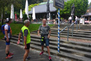 Nach und nach trudeln dann auch Judith, Axel und Andreas in eben dieser Reihenfolge ein. Nach ein paar weiteren Erinnerungsfotos wollen wir noch gemeinsam ins Bad gehen. Ins Bad gehen wir aber nicht zum Planschen, sondern auf ein Augustiner. 1894 wurde das denkmalgeschützte Gebäude der heutigen Gaststätte „Das Bad“ errichtet. Als Tröpferlhaus diente es den Anwohnern der Schwanthalerhöhe als öffentliches Brausebad. Später, als die Bevölkerung selbst über Bäder verfügte, wurde das Bad zur öffentlichen Bedürfnisanstalt, sprich zur Toilette, umfunktioniert. Nach längerer Restaurierungszeit wurde vor drei Jahren schließlich „Das Bad“ eröffnet. Wir lassen den Tag hier ausklingen und eigentlich ist es schon so gut wie ausgemacht. Auch wenn es nächstes Jahr wieder ein Oktoberfest geben sollte, einen Oktoberfest Marathon wird es dann wohl trotzdem wieder geben. Vielleicht zu einer anderen Zeit, aber sicher am selben Ort.