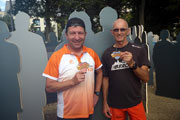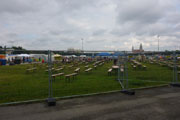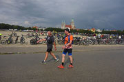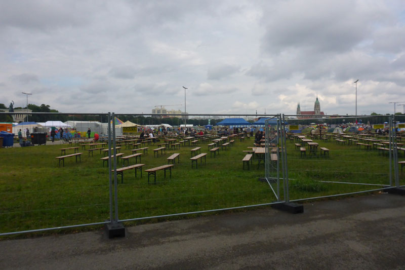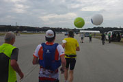 Das Teilnehmerfeld für den diesjährigen Marathon hat sich um sage und schreibe fünfzig Prozent vergrößert. Neben Judith, Bernie und Axel stehen noch drei andere Asse am Start. Gut, dass es mit Andreas, Andy und Greppi keinerlei Verwechslungsgefahr gibt. Auch wenn das Teilnehmerfeld übersichtlich ist, handelt es sich beim Oktoberfest Marathon wohl um einen der sichersten Marathons überhaupt. Ein massives Polizeiaufgebot erwartet uns, als wir auf der Theresienwiese einparken. Eine größere Demo gegen die Internationale Automobilausstellung ist der Grund hierfür. Doch die Demonstranten werden uns heute nicht stören. Wir ziehen einen Nutzen aus der Situation. Die Runden um die Wiesn sind nicht ganz so eintönig und wir haben zeitweise sogar musikalische Unterhaltung.