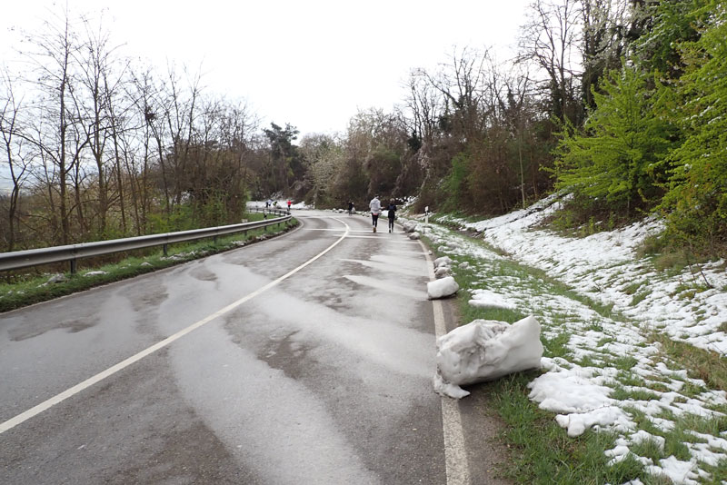 Am nächsten Morgen staunten wir nicht schlecht als wir nach draußen sahen. Gut 25 Zentimeter Schnee hatte uns die Nacht beschert. Silke äußerte sich hinsichtlich meiner für den Sonntag mitgebrachten Laufkleidung etwas besorgt und so machten wir uns erst einmal ins nächstgelegene Sportgeschäft auf, um eine lange Laufjacke zu besorgen. Immer wieder bekamen wir an diesem Tag bestätigt, dass das Wetter für die Region nicht typisch ist. So viel Schnee hatte man hier schon Jahre nicht mehr gesehen und schon gar nicht im April. Gut ausgerüstet fuhren wir dann nach Bockenheim, wo in Kürze die Starnummernausgabe erfolgten sollte. Schon nach wenigen Minuten hatte ich meine Startnummer und ein Flasche Riesling mit einem eigens für den Marathon gestalteten Etikett in den Händen. Es war also alles gerüstet für morgen. Noch ein leckeres Abendessen und dann ging es zeitig ins Bett. Ich wollte für den Marathon ausgeschlafen sein.
