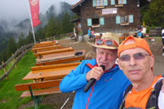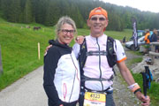 Nach 3,7 km beim Sprint passieren wir wieder die Kappeler Alp auf der Rückseite, diesmal aber ohne Verpflegungsangebot. Rennleiter Horst und Rudi haben ihren Job erledigt und sind gerade auf dem Rückweg ins Zielgelände. Köstlich amüsieren sie sich über meinen Reinfall auf Juttas April Joke. Apropos April, April. Das Wetter verhält sich auch gerade so. Kurze Sonnenabschnitte wechseln permanent mit Regenschauern. Kurz vor dem Sportheim Böck passieren wir wieder eine Zeitmessmatte, der Vertical 500 ist beendet.