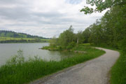 Ganz kommod mit angenehmem Gefälle, führt uns eine Schotterstraße über 2,5 km wieder bergab bis kurz oberhalb der Wallfahrtskapelle Maria Trost. Einige Aufstiegsmeter weiter querfeldein erreichen wir nach 8 km unsere erste Versorgungsstation an der Kappeler Alp, wo uns Rudi am Micro schon erwartet. Für ein zweites Frühstück warten Kuchen, Waffeln, vegane Energieriegel und noch weitere Häppchen auf uns.