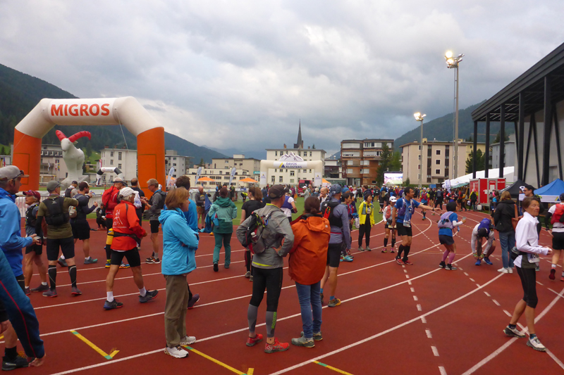 Etwas sorgenvoll blicke ich am Sportzentrum Davos in den wolkenverhangenen Himmel. Nach vielen Sonnentagen erwischt uns ausgerechnet am Veranstaltungswochenende ein Tiefdruckgebiet. Als ich am Freitagnachmittag auf der Anlage ankomme, dürfen gerade die Kids ihre Runden im Stadion drehen. Sie brauchen sich um das Wetter noch keine Sorgen machen und haben ihren Spaß bei ihren Läufen.