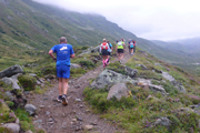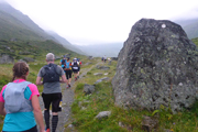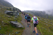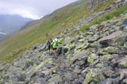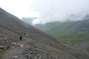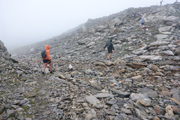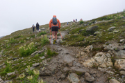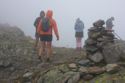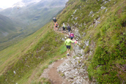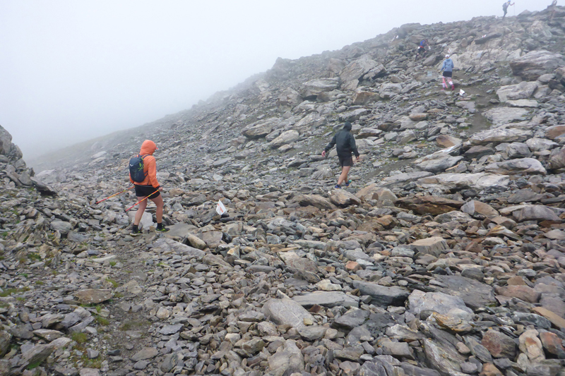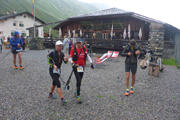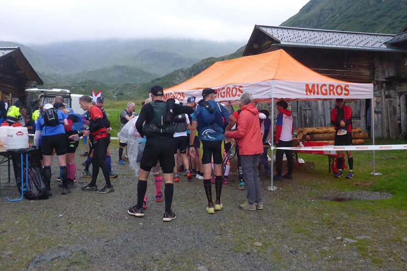 Nach 13,5 km erreichen wir in Dürrboden unseren zweiten Versorgungs-Posten. Vermutlich wetterbedingt hat das Alphornbläserpaar ihre Instrumente bereits zur Seite gelegt und erfreut die Nachhut nicht mehr mit ihren Künsten. Dafür können wir uns ausgiebig mit Alpkäse, Trockenfleisch und Brot beschäftigen.