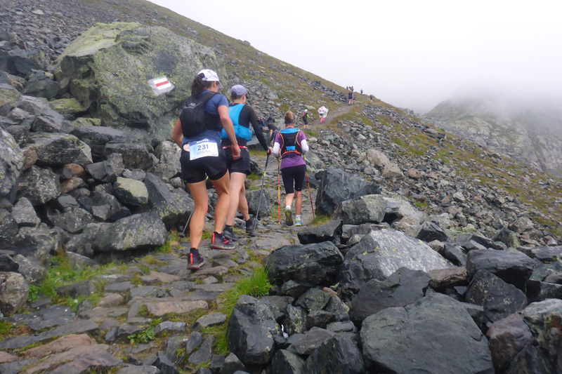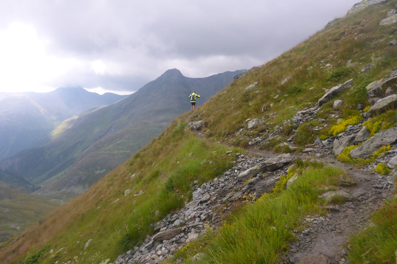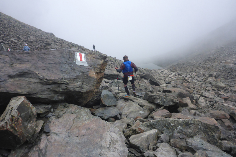 Ich habe mich bei meinem Davos-Debüt für den Gold Run entschieden, die Cut Offs des Diamond Run nötigen mir ohne Streckenkenntnisse großen Respekt ab. Für den Gold Run beträgt das Zeitlimit 11:30 Stunden, das finde ich äußerst großzügig und sollte eigentlich kein Problem sein. Um 7.00 Uhr wird die Zeitmessung gestartet und ohne große Hektik setzt sich das Feld in Bewegung. Von oben rührt sich glücklicherweise noch nichts, aber die Wolken sehen recht bedrohlich aus.