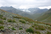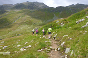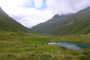 Früher war der Dürrboden eine wichtige Station auf der Säumerroute Via Valtellina, die vom Montafon über Davos und den Scalettapass ins Engadin und weiter über den Berninapass ins Veltlin führte. Der Restaurantbetrieb heutzutage ist bedingt durch die hohe Lage auf 2011 m auf Mitte Juni bis etwa Mitte Oktober beschränkt. Das Gasthaus bietet einige Besonderheiten, insbesondere was die Energieversorgung anbelangt: Der Strom wird weitgehend autark durch eine eigene Wasserturbine produziert, der Gastraum mit einem Holzofen beheizt und das Frühstücksei im originellen Naturkäfig an der Hüttenwand selbst erzeugt, wovon wir uns am Wegesrand direkt überzeugen können. |