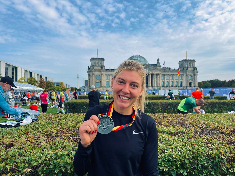 Wir beschleunigen. Wechseln uns gegenseitig ab. Zuspruch. Wir biegen um die Kurve, noch 700 m bis zum Ziel, wir laufen unter den Linden, das Brandenburger Tor strahlt uns erhaben an. Schmerzen. Der letzte Blick auf die Uhr, die letzte Addition von Sekunden. Tränen. Die Gesichtszüge sind unkontrollierbar und die Waden verkrampfen. 195 Meter. Wir rennen durchs Ziel, stoppen, strahlen, weinen, schreien. Freue, Erleichterung, Dankbarkeit, Glück, Freudentränen, Ungläubigkeit, Belohnung, Lachen. Und am Ende bleibt da dieser unbändige Stolz. Und zwei Stunden, neunundvierzig Minuten, zweiundfünfzig Sekunden.