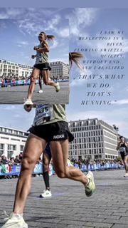 Bestimmtheit. Gel und Wasser greifen, Kilometerzeit überprüfen, überholen, blaue Linie. Rhythmus. Wir biegen auf den 30. Kilometer ab, strahlend renne ich Corinna und Enrico entgegen. Emotionen. Wollen wir unter 2:50 laufen? Wir reden nicht, wir zünden alle Feuer. 19 Minuten 45 Sekunden. Die Beine schmerzen, während die Zeit gnadenlos weiterläuft. Fremde Gesichter, die verschwimmen, schreien deinen Namen. Berlin Marathon. Noch vier Kilometer, ich rechne noch nach, auch wenn es hunderte von Meter dauert. Es kann klappen.