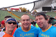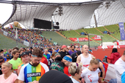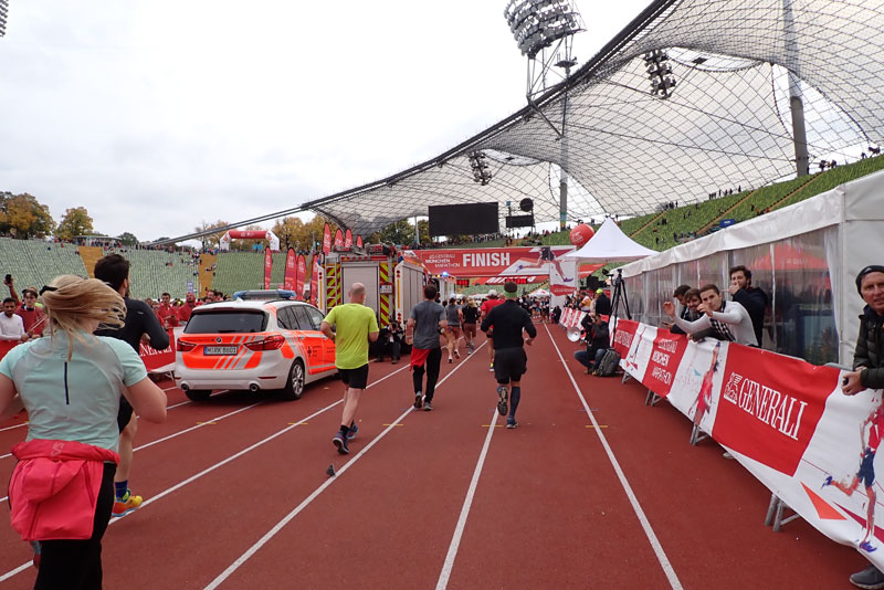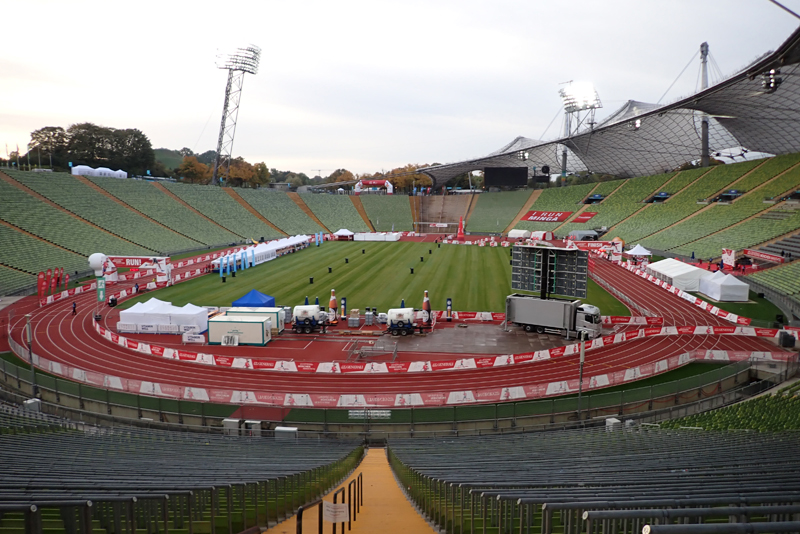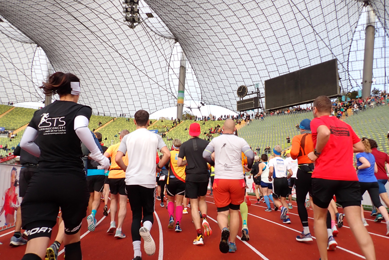 Damit wird es am Sonntag halt mal wieder nichts mit ausschlafen und ich parke pünktlich um halb acht auf der Parkharfe des Olympiageländes ein. Jürgen überreicht mir meine Startnummer, die er dankenswerterweise am Samstag für mich abgeholt hat. Es ist mit sechs Grad noch nicht wirklich warm und wir verkriechen uns nochmal ins Auto, um uns fertig zu machen. Der Weg führt uns schließlich direkt ins Olympiastadion, denn es gibt eine Neuerung. Nicht nur das Ziel, sondern auch den Start findet man seit dem vergangenen Jahr im Stadionrund. Während der Start langsam näher rückt, kann ich my4-Kollege Toni Lautner begrüßen. Erstaunlicherweise treffe ich in München immer nur wenig bekannte Gesichter. Heute sind nur noch Judith und Andreas, sowie Armin und zwei oder drei namentlich nicht bekannte Mitläufer am Start, die ich kenne. Alexandra aus Wexford in Irland ist auch da, das erfahre ich leider erst im Nachhinein, so dass wir leider nichts ausmachen konnten. Zuletzt hatten wir uns an gleicher Stelle bei einem Metallica-Konzert getroffen.