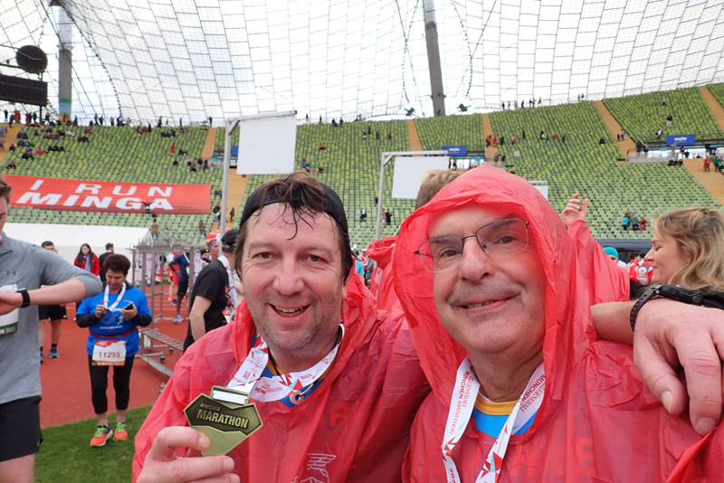 Fast wäre mir der München Marathon in diesem Jahr durch die Lappen gegangen. Noch nicht ganz in Marathonform, entschied ich mich zunächst gegen eine Teilnahme. Bei einem Stadtmarathon sollte zumindest eine Laufzeit von unter fünf Stunden drin sein und das ist es aktuell noch nicht. Es fehlen mir die langen Läufe und vor allem das Vertrauen in meine Wirbelsäule. Das alles braucht noch etwas Zeit und die will und muss ich mir auch nehmen. Ganz so viel Zeit hat mein Laufbruder Jürgen Englerth nicht. Er muss in vier Wochen beim New York Marathon die 5:30 Stunden pacen und hängt auch noch etwas hinten nach. Daher kam ihm die Idee mal bei mir nachzufragen. Gemeinsam, ganz langsam und gemütlich und das Ganze innerhalb des Zeitlimits von sechs Stunden. So wird auch für mich ein Schuh draus und wir nutzen am Samstag vor dem Marathonwochenende die Nachmeldefunktion auf der Homepage des München Marathons.