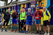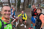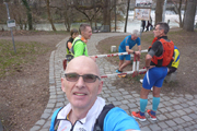 Ausgemachter Treffpunkt ist um 9.45 Uhr neben der Muffathalle. Jürgen war schon vor mir da und Judith und Andreas treffen auch etwas früher ein. Schon seit ganz früh am Morgen sind bereits Tom und Phillip, unabhängig voneinander unterwegs. Phillip schafft es doch tatsächlich mit neuer Streckenbestzeit, seine Runde genau bis zu unserem Start zu beenden. So bringen wir 7 von 8 Starter aufs Gruppenbild.