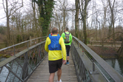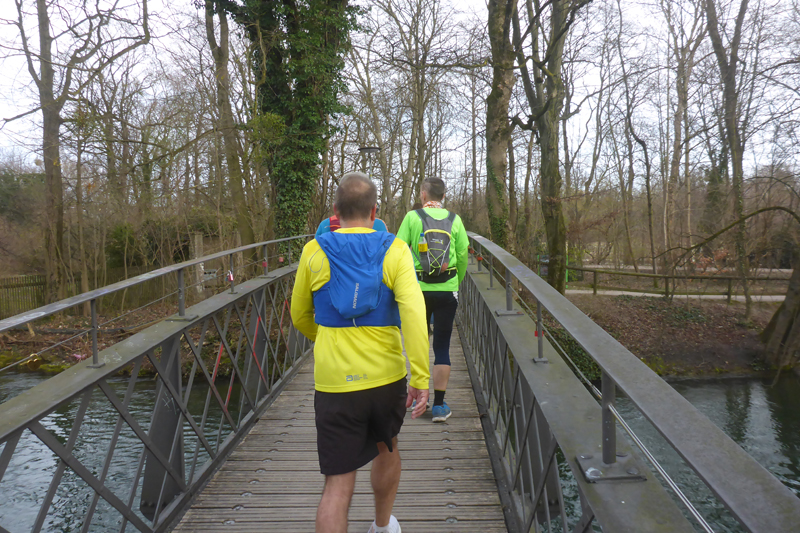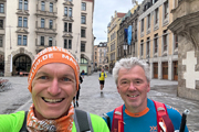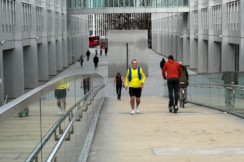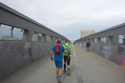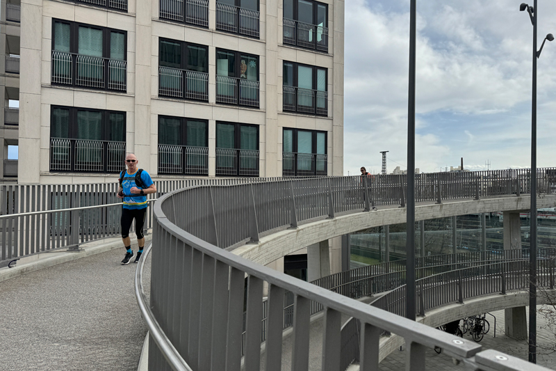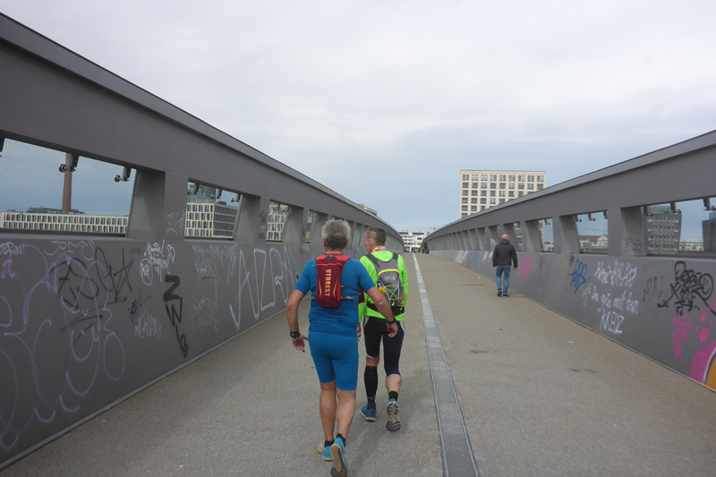 Wir laufen zwar nicht immer gemeinsam, aber oft treffen wir an Ampeln oder an besonders attraktiven Stationen immer wieder aufeinander. Ich freue mich immer auf Andreas Anmerkungen zu besonderen Orten, daher bevorzuge ich auch in seiner Nähe zu laufen. Außerdem, kennt er natürlich die Strecke am allerbesten und Verläufer sind daher nicht zu erwarten, während das navigieren auf meinem winzig kleinen GPS-Uhren-Display nicht immer ganz so einfach ist.