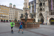 Nach anderthalb Kilometer sind wir bereits am Marienplatz, besuchermäßig ist es noch angenehm ruhig. Das Neue Rathaus rechterhand ist nicht nur Sitz des Oberbürgermeisters, sondern auch dank des berühmten Glockenspiels weltbekannt. Über 600 Mitarbeiter*innen der Stadt arbeiten in den 400 Zimmern des Gebäudes, das man nicht nur von außen betrachten kann. Viele historische Räume sind öffentlich zugänglich.