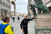 300 Meter weiter sind wir bereits an der Frauenkirche. Der Dom „Zu Unserer Lieben Frau“ ist das Wahrzeichen Münchens und hatte 2023 seinen 555. Jahrestag der Grundsteinlegung. Die Residenzstraße führt uns am Odeonsplatz vorbei. An der Residenz auf Höhe der Feldherrnhalle müssen wir alle natürlich einen Stopp einlegen um die Schnauzen am unteren Ende des Schilds der vier Löwenfiguren zu reiben, das bringt angeblich Glück.