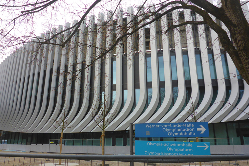 Nach unserem altehrwürdigen Olympiastadion, für mich immer noch eines der architektonisch schönsten Sportstadien der Welt, passieren wir den fast fertiggestellten futuristischen SAP Garden, der im September eröffnet wird. Die gigantische Hightech-Arena wird die Heimat vom Eishockey-Team EHC München und auch die Basketballer des FC Bayern finden einen Platz unter dem neuen Dach. An einem einzigen Tag könnten dort sowohl Pucks über das Eis schlittern als auch Basketbälle in die Körbe fliegen. Die Eisfläche kann binnen sechs Stunden in ein Parkett umgebaut werden. Auf dem Dach der Halle befinden sich eine Blumenwiese und ein Imker, damit neben den Bullen und den Bällen auch die Bienen fliegen können.