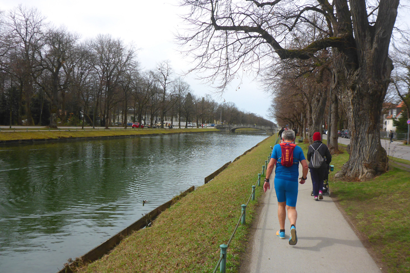 Wir ziehen weiter, am Chinesischen Turm ist so gut wie noch gar nix los. Wie es wohl aussähe, wenn die Haltestelle der Tram schon in Betrieb wäre, aber so weit wird es nicht kommen. Schon seit Jahren ist die Trasse durch den Englischen Garten geplant. Überraschend zog der Freistaat seine Zustimmung zum rund 800 Meter langen Abschnitt durch den Park zurück, was den Bürgermeister gar nicht erfreut. Uns kanns aber recht sein, wir sind hier ja eh lieber per pedes unterwegs. Im heutigen Fall verweilen wir genau 3,7 km im Grünen.