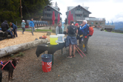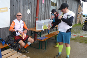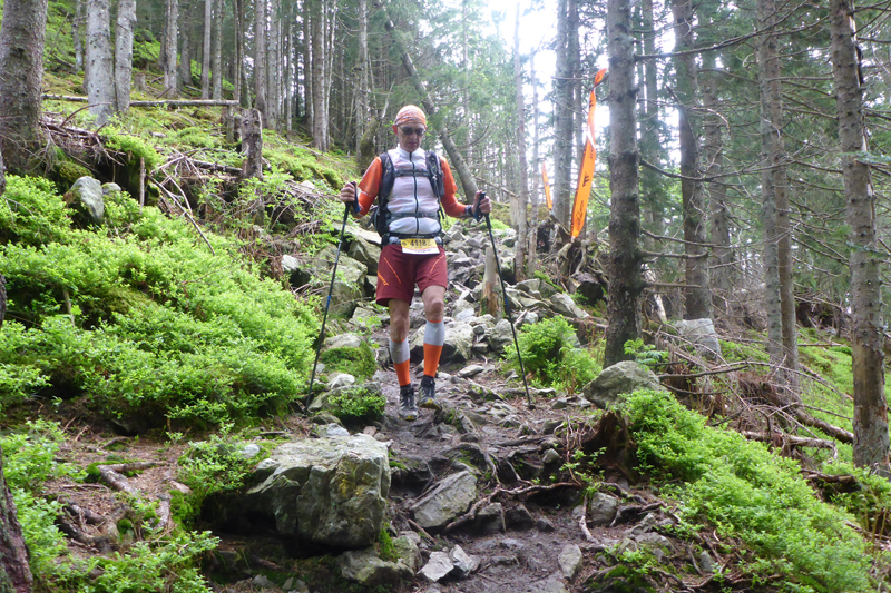 Wie bei den meisten Trails heutzutage Usus, gibt es auch hier eine vorgeschriebene Pflichtausrüstung, die wird beim Zugang zum Startkanal stichprobenartig kontrolliert. Rennleiter Horst kennt mich und weiß, dass ich alles dabeihabe und lotst mich an den Kontrolleuren vorbei. Großen Wert legt man auf die Rettungsdecke und auf das Mobiltelefon, was auch Sinn macht. Wer aussteigt während des Rennens, muss sich bei der Rennleitung abmelden. Eine Suchaktion in den Bergen kann sonst teuer werden für denjenigen.