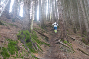 Der Anlauf bis zum ersten Anstieg beträgt gerade einmal 400 Meter, so schnell hat sich das Feld noch nicht entzerrt, so ist die erwartete Stockung keine große Überraschung. Überraschend für mich aber der Zustand des Wirtschaftsweges mit seinen tiefen Fahrrinnen. Normalerweise standen wir hier jedes Mal bereits knöcheltief in der Suhle, heute präsentiert sich der Weg relativ trocken, ist erfreulicherweise ganz passabel zu begehen und man muss sich nicht an der Seite, am etwas erhöhten Seitenstreifen hocharbeiten. Einen Kilometer und zweihundert Höhenmeter zieht sich der Weg hinauf. In etwa genauso weit geht es auf dem Kreuzweg Maria Trost nachfolgend auch wieder runter.