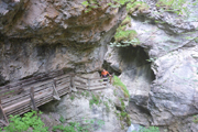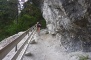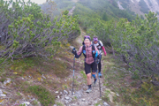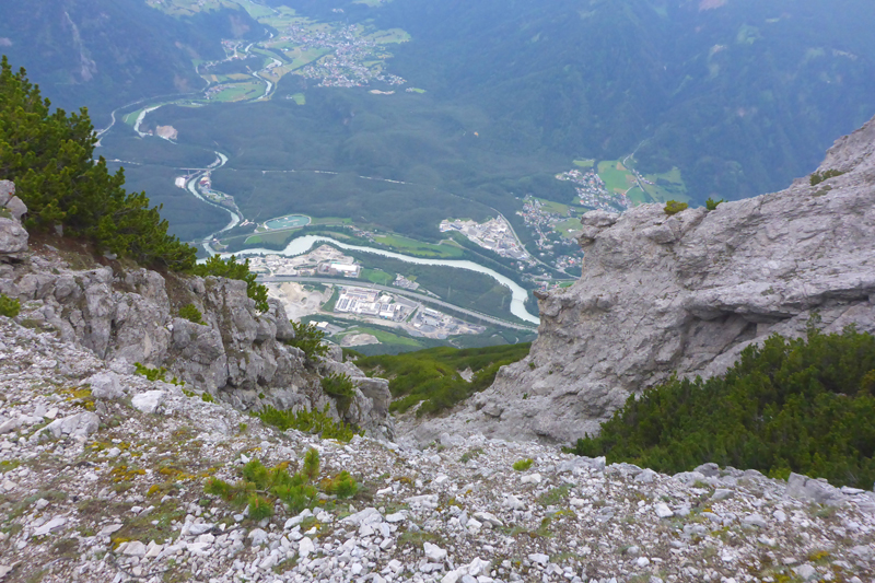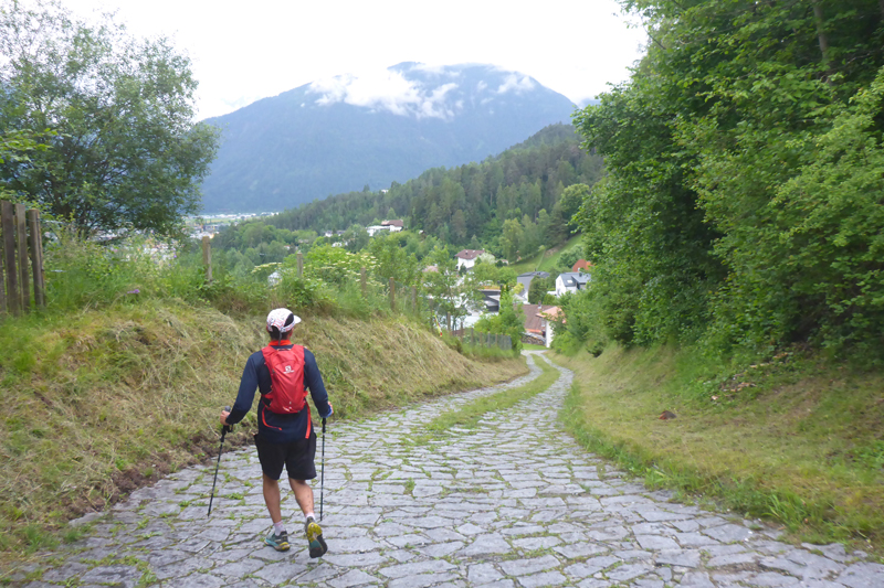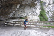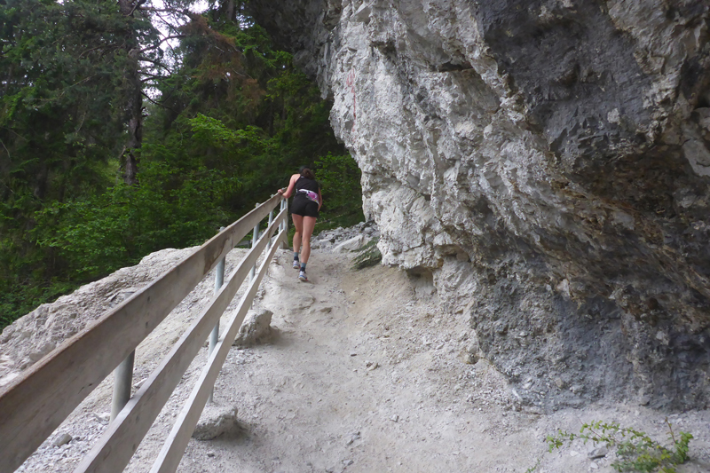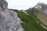 Unser Weg zum Haiminger Kreuz ist felsig und nicht ungefährlich und man muss auch mal die Hände einsetzen um nach oben zu klettern. Karl-Walter hat ja noch ein paar Jährchen mehr auf dem Buckel als ich und lässt hier noch mehr Vorsicht walten, so bleibt er immer weiter zurück. Aber ich bekomme bald neue Models vor die Linse, von hinten rücken Sarah und Isabella von der Ultrastrecke auf. Während einer Unterhaltung mit Isabella, stellen wir fest, dass sie aus Friedberg stammt und lange dort gelebt hat. Ja, so klein ist die Welt.