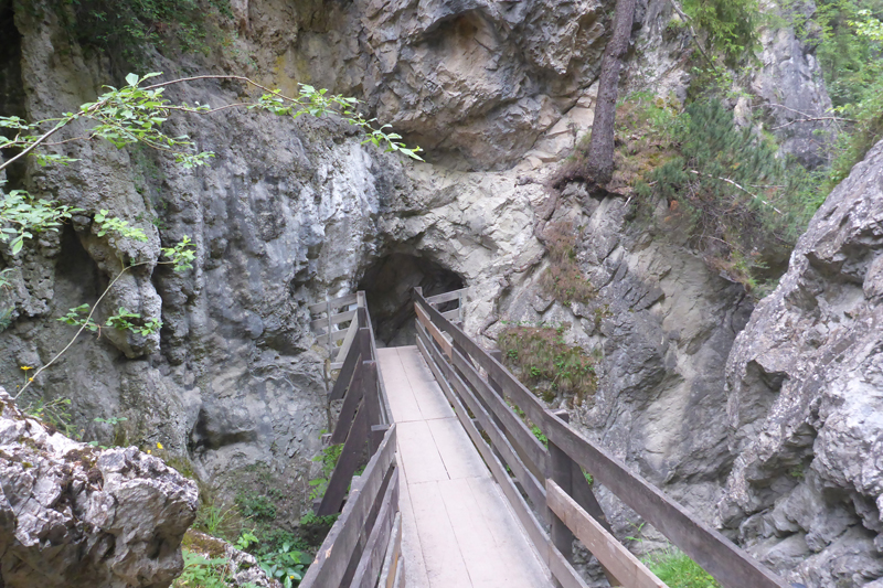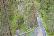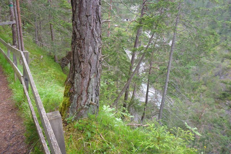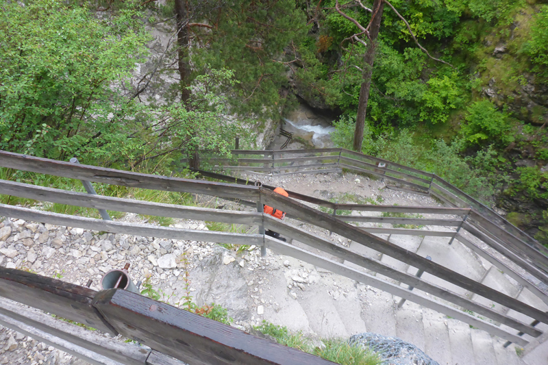 Ein schöner Forstweg führt uns durch den Tschirgantwald weiter aufwärts. Mittlerweile herrscht jetzt richtig Betrieb, immer mehr Läufer*innen des TS26-Feldes rücken von hinten auf. Gelegentliche Aussichten hinunter ins Gurgltal belegen, dass wir bereits einige Höhenmeter geschafft haben. Karl-Walter und ich lassen uns auch von den deutlich schnelleren TS26-igern nicht aus der Ruhe bringen und wir genießen die zwischenzeitlichen Panoramen. Ein Selfie auf einer Aussichtsplattform gehört dazu.
