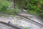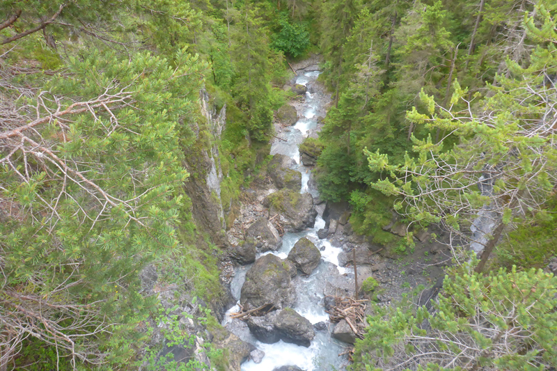 Die ersten Meter zum Einlaufen sind gar nicht mal so angenehm, der Startkanal neben der Kletteranlage liegt bereits etwas tiefer und auch der gesamte erste Kilometer am Ortsrand von Imst führt immer schwach bergauf, so benötige ich etwas um in Schwung zu kommen. Nach einem rechtsknick auf die Gurgltalschleife wird es aber entspannter, wir rollen leicht abwärts.