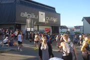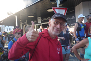Zur Regeneration verziehe ich mich bald ins wohlig temperierte Außenbecken des Wonnemar. Nach einer halben Stunde hat sich meine Muskulatur wieder so weit normalisiert, dass ich den Zielbereich aufsuchen kann. Mit einigen Zielankünften von Ultra-Läuferinnen und -läufer trifft auch gerade der letztplatzierte des Marathons, samt Besenradler im Ziel ein.