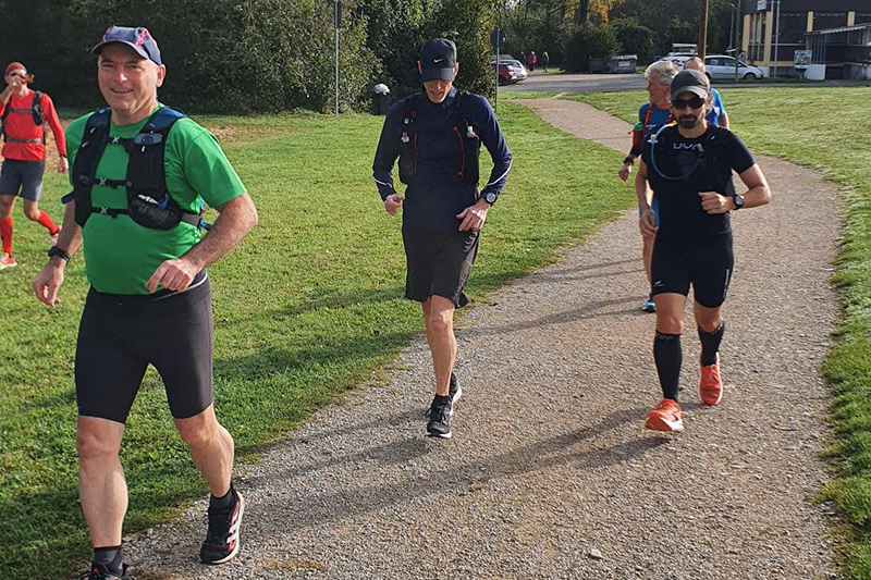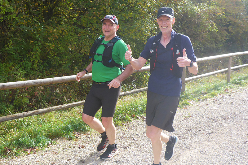 Für Roland aus dem Raum Nürnberg ist das alles Neuland, jetzt darf er noch die halbe Strecke der Kuhsee Marathon Challenge begutachten, wo er dann im Dezember wieder hierher zurückkommt. Im Übrigen ist er ja ein ganz harter Hund. 52 Marathons und Ultras will er 2024 bewältigen und bisher ist er im Soll. Dabei hat ihm sein Orthopäde noch vor ein paar Jahren versichert, er wird keinen Halbmarathon mehr laufen können. Das hat er nach seiner Verletzung auch nicht mehr, aber dafür 150 Marathons und Ultras.