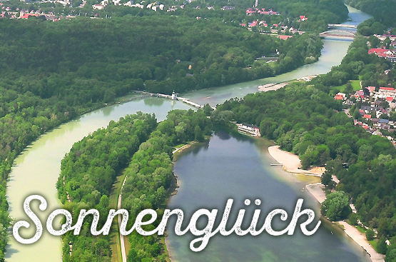 Nicht besonders aufregend, bis auf ein paar interessante Eisenbahntunnels und -brücken, geht es an der Wertach entlang. Erst weiter südlich, ab Höhe Ackermannstraße, wo der Fluss schon renaturiert ist, macht er optisch richtig was her. Ein zweites Mal haben wir heute Sonnenglück, direkt an unserer Laufstrecke liegt der Kiosk Sonnenglück mit seinem einladenden Biergarten. Die perfekte Lage überzeugt uns schnell, einen kleinen Break einzulegen, um unseren Flüssigkeitshaushalt auszugleichen.