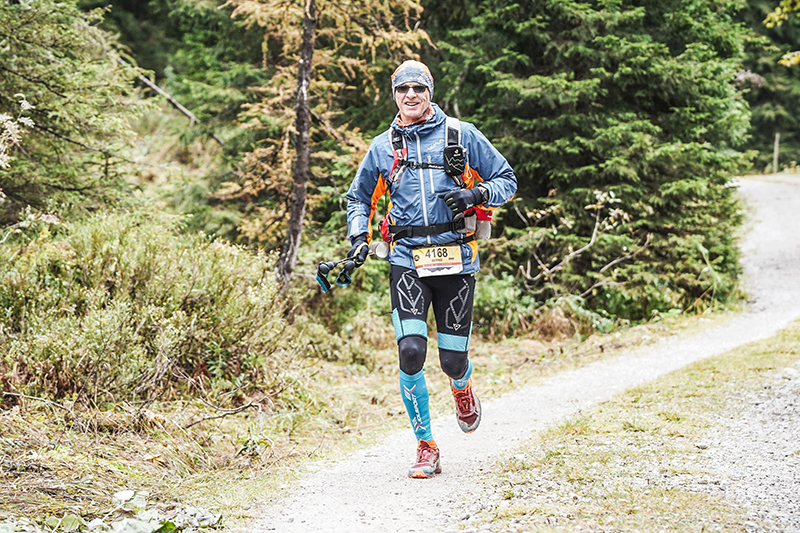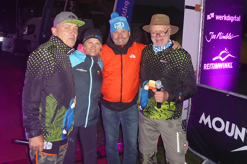 Während meiner Anfahrt vom Hotelzimmer um 6 Uhr zum Startgelände ist es noch dunkel und es regnet dazu immer noch leicht und durchgängig, das macht mir wenig Hoffnung auf eine Wetteränderung. Die Teilnehmer*innen an der Deutschen Meisterschaft im Ultratrail und auf der XXL-Strecke machen sich als erste Starter gerade auf den Weg, sie dürfen eine 20 km lange Zusatzschleife auf die andere Talseite von Reit im Winkl absolvieren, bevor sie dann quasi als Rest die XL-Runde vor sich haben.