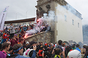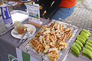 Schon von weitem kann ich die Musik vernehmen, die uns ein DJ vor der Bergstation der Eckbauerbahn (Km 12,5) auflegt. Mit leckeren Häppchen werden wir an dieser Genussstation vom TSV Partenkirchen versorgt. Da haben sich doch einige eingefunden, die die Stärkung mit Musik garniert, etwas länger genießen. Etwas weiter hinten hat der DJ seine Soundmaschine aufgebaut, zu überhören ist er aber deswegen nicht.