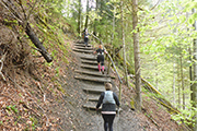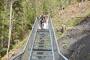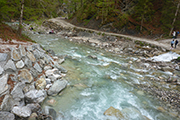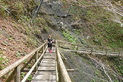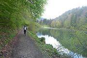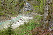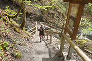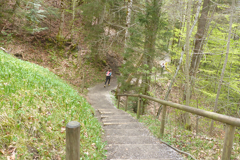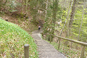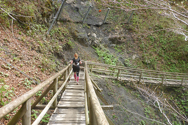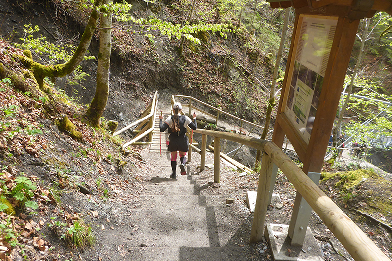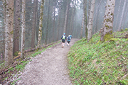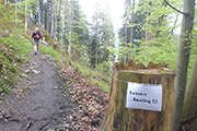 Mein Lieblingsabschnitt folgt direkt im Anschluss. Ein wunderbarer Single Trail führt uns mit vielen Serpentinen wieder runter vom Berg. A bisserl Vorsicht schadet hier heute nicht, der weiche Waldboden ist sehr feucht und schmierig. Gutes Profil auf den Schlappen ist definitiv von Vorteil. Passendes Schuhwerk zählt vom Veranstalter nicht Umsonst als empfohlene Ausrüstung. Ich würde ungern hier mit Straßensohlen heruntereiern. In Vordergraseck ist unser Downhill nach 2,5 km beendet. |